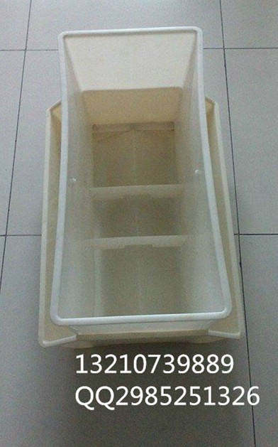白色,純原料生產,抗腐蝕,抗氧化,抗紫外線,堅固耐用長達8-10年,可裝35-40公斤料,料箱規格為63*30*37.5cm,重量是3kg左右。料箱底盤檐高有9cm,料斗統一規格。