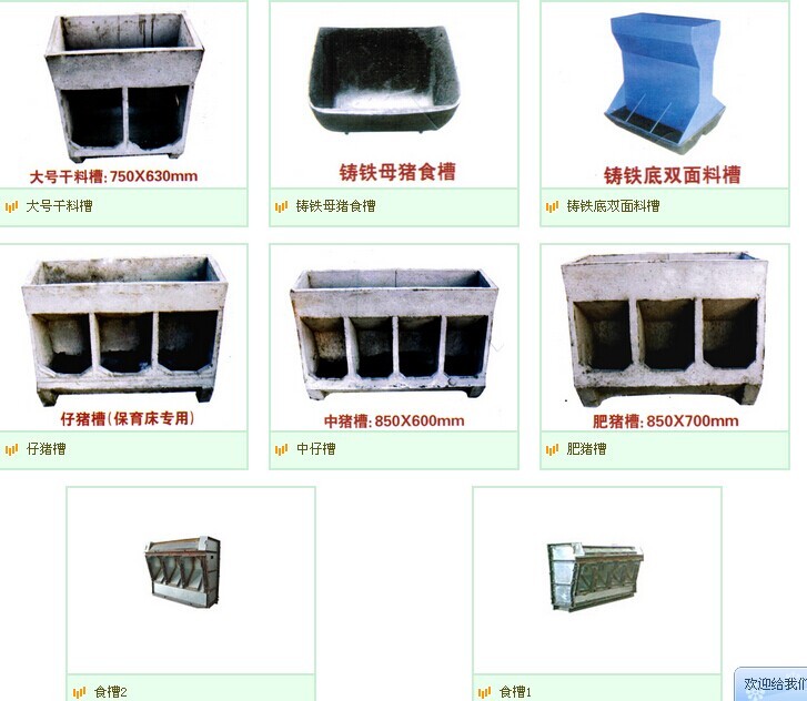 母豬產(chǎn)床,定位欄,保育床,肥豬欄,羊高培床,水泥食槽,鑄鐵食槽,鐵皮食槽