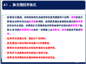 就只談跟我們冬棚里面關系比較密切的兩個問題,換殼期的營養強化和3-5公分消化系統所需要的特殊營養。