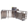 母豬精確飼喂系統機械部分包括飼喂器、通道、加長通道、分離器、噴色器組成。當母豬進入通道,稱重平臺獲取母豬體重,進口門自動鎖住,避免后面母豬干擾當前母豬采食。母豬在飼喂器的食槽采食,采食完畢通過分離通道出去。分離器有兩扇門,正常情況下通過正常門回大圈舍,只有豬只發情、待產、吃料不足時,正常門關閉,豬只從分離門分離到分離圈舍。當豬只離開稱重平臺,控制系統延時幾秒鐘,進口門自動打開,后面母豬進入飼喂站采食。